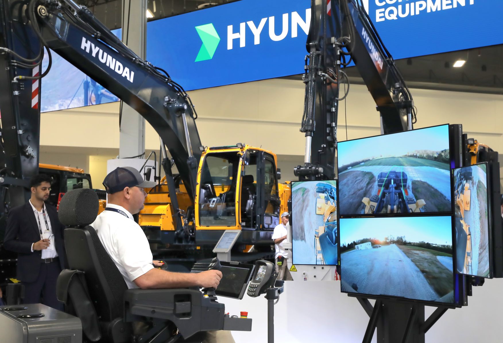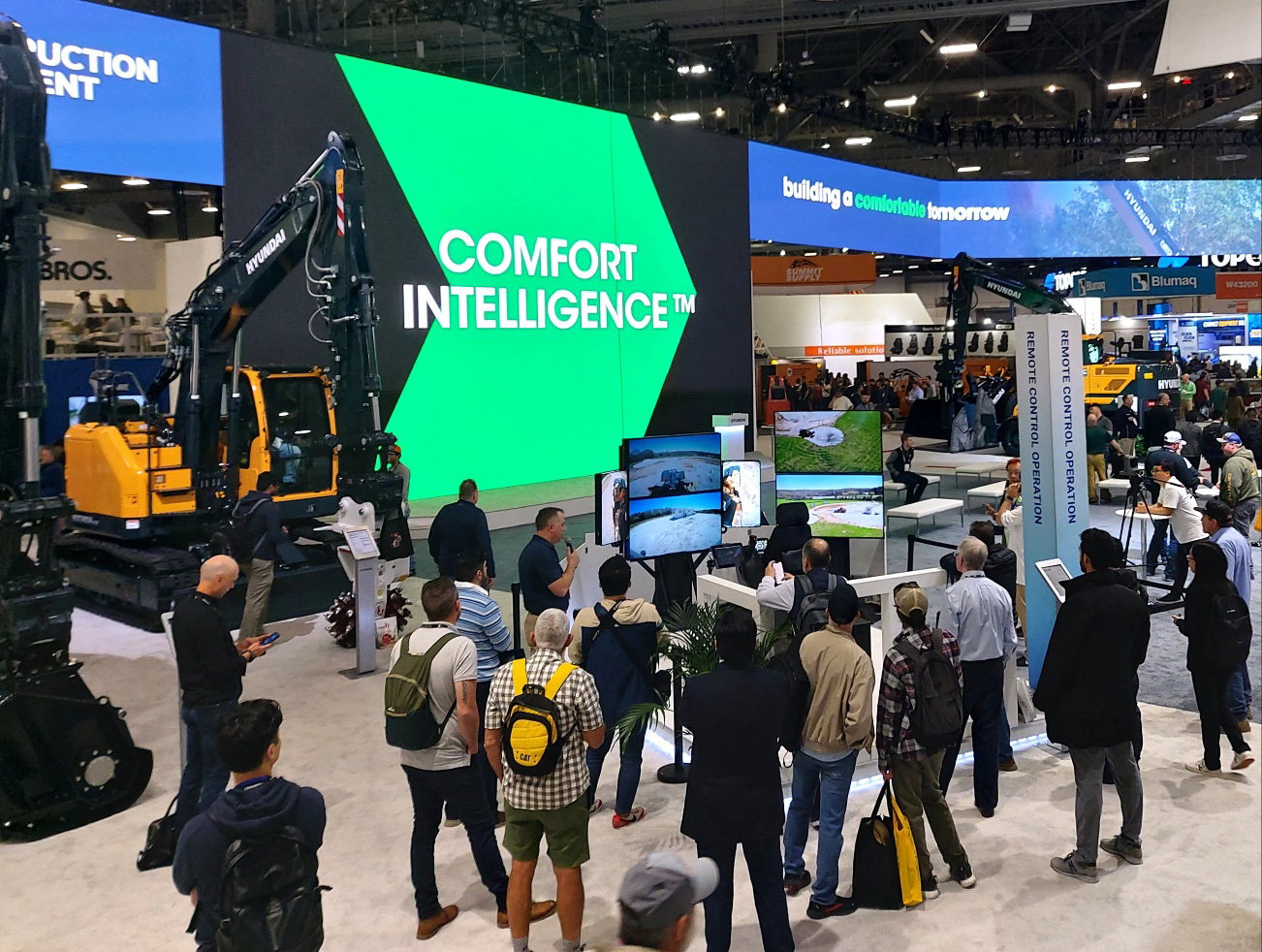 Hyundai Construction Equipment exhibited various products and solutions at the ConExpo 2023 exhibition, including 25 types of construction machinery in addition to new products such as mini excavators, skid loaders, ADT trucks, smart safety solutions, remote wheel loader control technology up to 2,900km, and eco-friendly 1.8-ton mini electric and 15-ton hydrogen excavators.