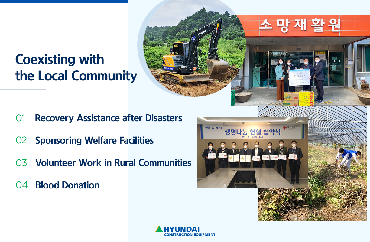 Hyundai Construction Equipment is also dedicated to serve the local community and aims to coexist with its members.