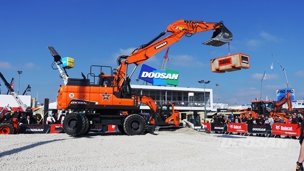 In its outdoor exhibition area (4,500m2), Doosan Infracore featured ten excavator models, three wheel loader models and one articulated dump truck (ADT) model, together with Doosan Bobcat's mini excavators, skid-steer loaders and compact track loaders, as well as a wide selection of attachments. The company also introduced its compact diesel engine (G2 engine) and Doosan portable power products.