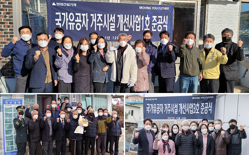 현대건설기계는 거주지 새단장 완공을 기념하기 위해 작년 12월 16일(목)부터 22일(수)에 걸쳐 6ㆍ25 참전 국가유공자인 김경두(87세, 울산시 울주군), 이규삼(87세, 충북 음성군), 천안함 용사 유족인 김석우(67세, 충남 서천군)씨의 자택에서 준공식을 가졌다.