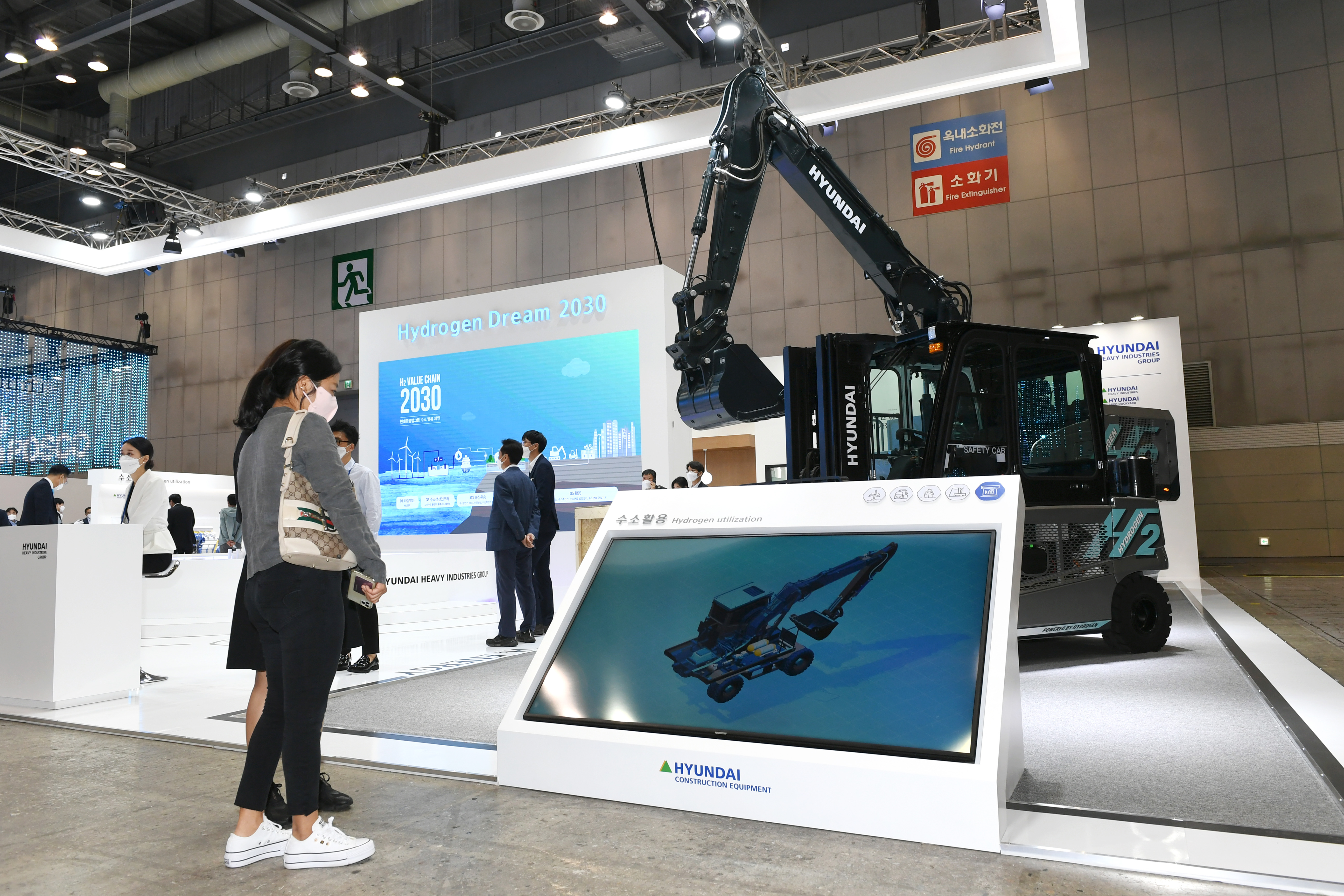 전시회는 ▲수소모빌리티 ▲수소충전인프라▲수소에너지 등 크게 세가지 주제를 다루었으며 현대건설기계는 수소굴착기와 수소지게차를 출품하여 부스 방문자들의 시선을 사로잡았다.
