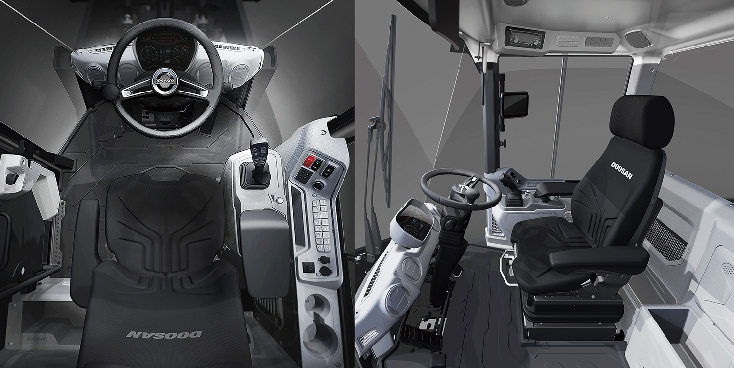 운전자 편의성도 더욱 좋아졌다. 운전석(캐빈) 전측방 사각지대를 최소화했고, 이전 모델 대비 유리창 면적은 14% 넓어 작업 시야가 확대됐다. 업계 최초로 스마트키를 적용하고 인체공학적인 조작부 배치 및 스마트키를 이용한 반자동 도어 기능으로 편의성을 한 층 높였다.